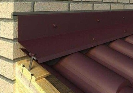 Он имеют аналогичное защитное покрытие и окраску. Металлический лист изогнут под прямым углом вдоль длинной стороны, по длинным кромкам сделана отбортовка. Планка примыкания предназначена для того, чтобы закрыть зазор, образующийся в месте стыка ската с вертикальными поверхностями.
