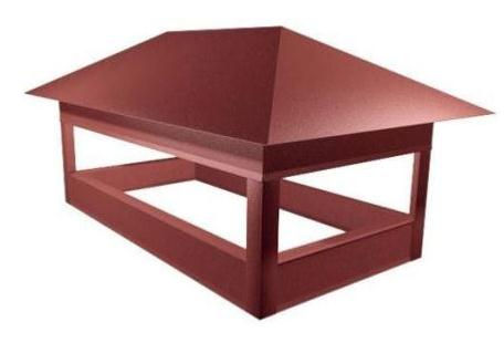 Используется для дымоходов и вентшахт, отделка которых выполнена декоративными материалами (штукатурка, облицовочная плитка или кирпич). Защищает вентшахту от попадания в нее снега, дождя и мусора. Конечно такое изделие придает ещё и красивый внешний вид Вашему дому.